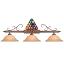 A set of racked balls add colorful fun to complement this three-light billiard pendant with traditional-style glass shades.