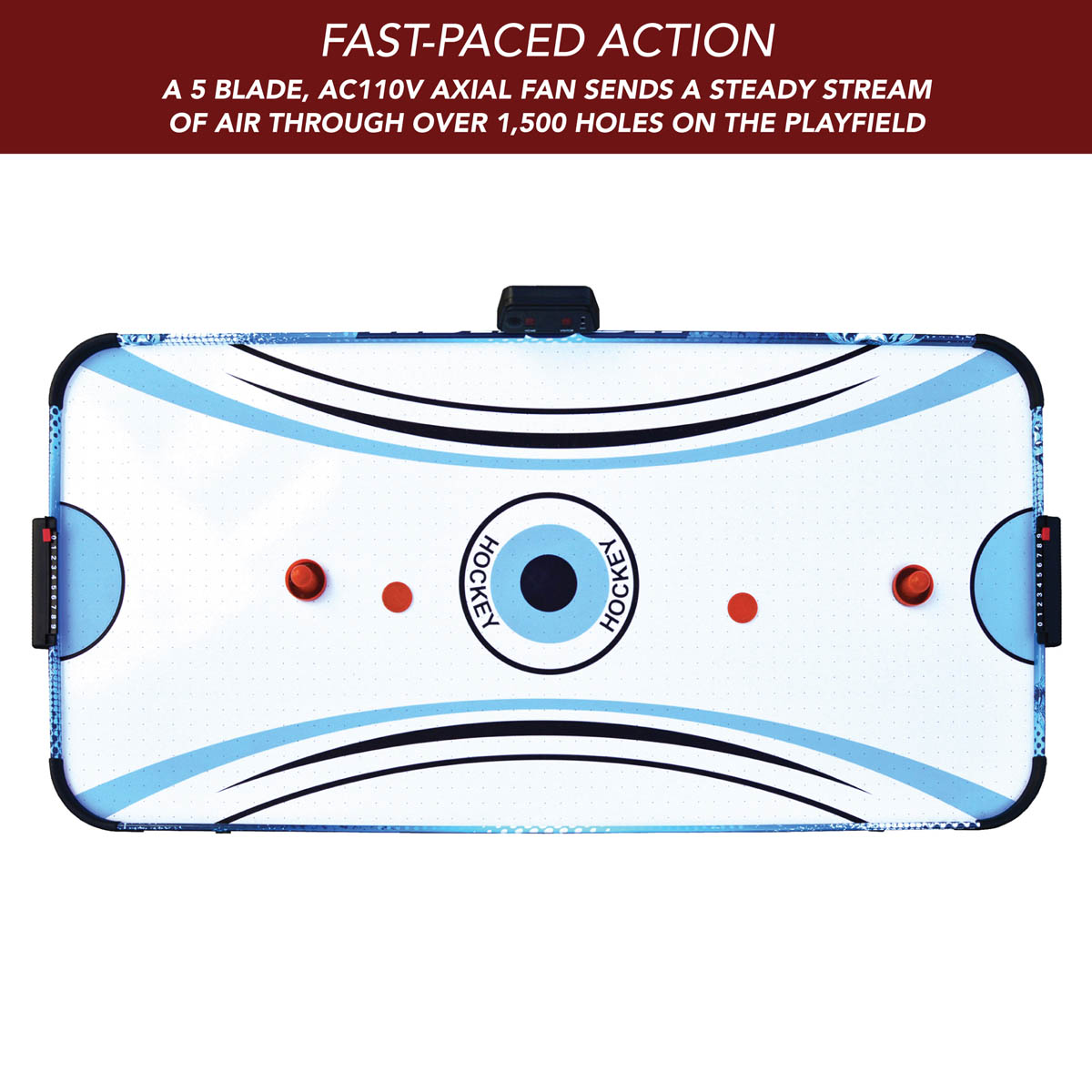 Super slick, glossy play surface powered by 110V UL-approved high output electric blower for fast-action gameplay (AC adapter included)