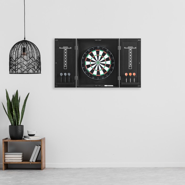 - This Dartboard Cabinet is masterfully crafted of kiln-dried solid Aspen.