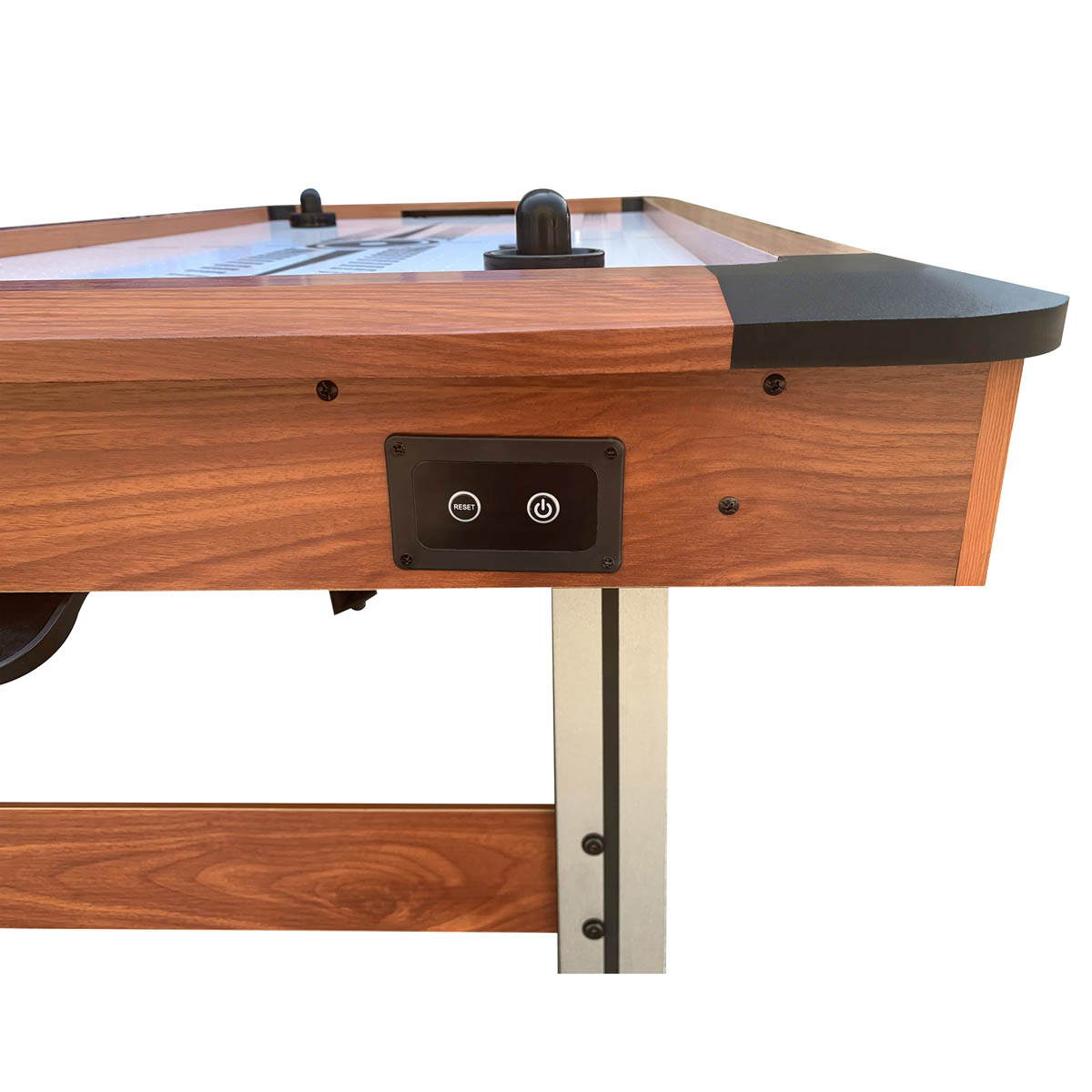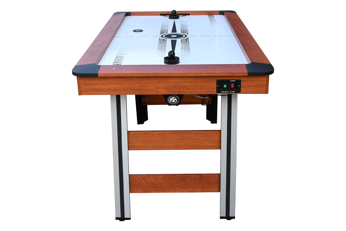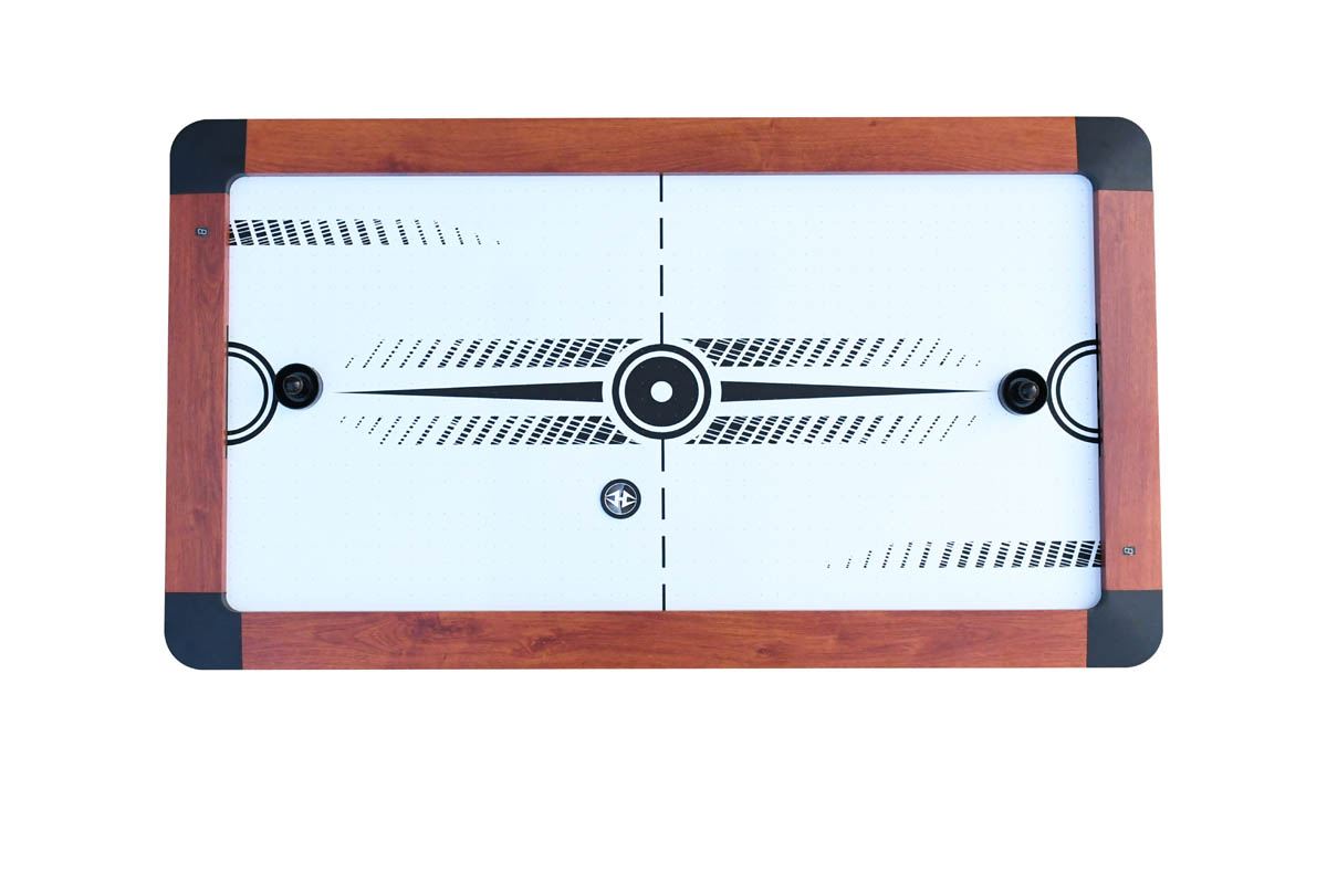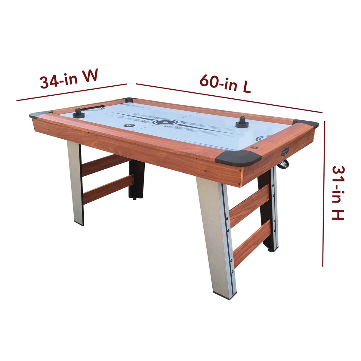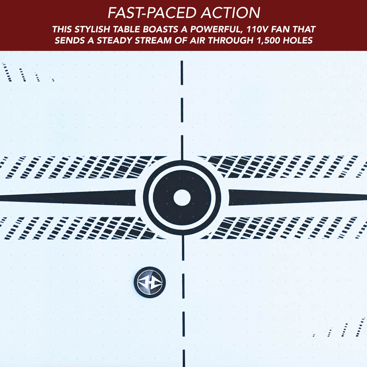 - FAST-PACED ACTION: This stylish table boasts a powerful, 110V fan that sends a steady stream of air through 1,500 holes. The included pucks glide cleanly over the slick, poly-sealed surface.