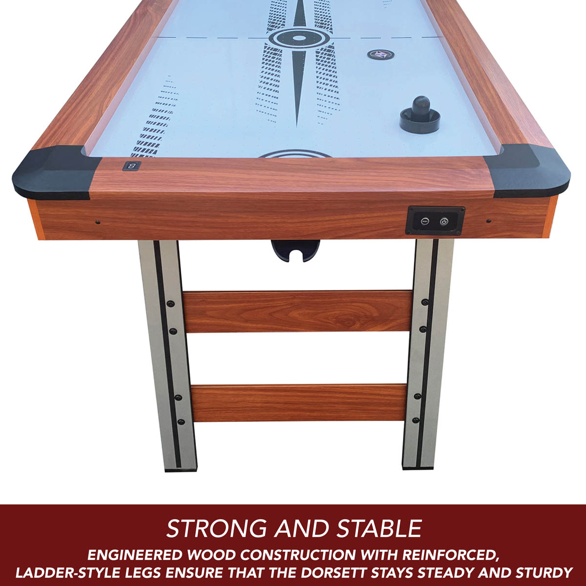 Fill your game room with fast-paced fun for the whole family. The Dorsett's compact design is perfect for kids and adults will love the classic, yet modern look. Constructed from durable, engineered wood, this table stands up to the toughest competition. Reinforced, ladder-style legs with built-in leg levelers provide rock-steady support on any surface.