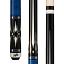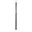 Black with white and mother of pearl accented playing cue. Blue Birdseye maple handle