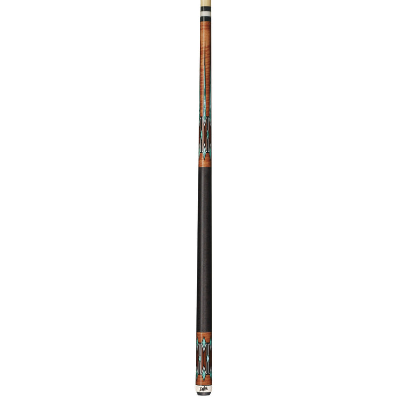This new Dufferin cue features an Canadian Hard Rock Maple forearm and butt with Antique Curly, malachite points & diamonds, cocobolo accents graphic overlays, solid black double-pressed Irish linen wrap, and Everest tip.