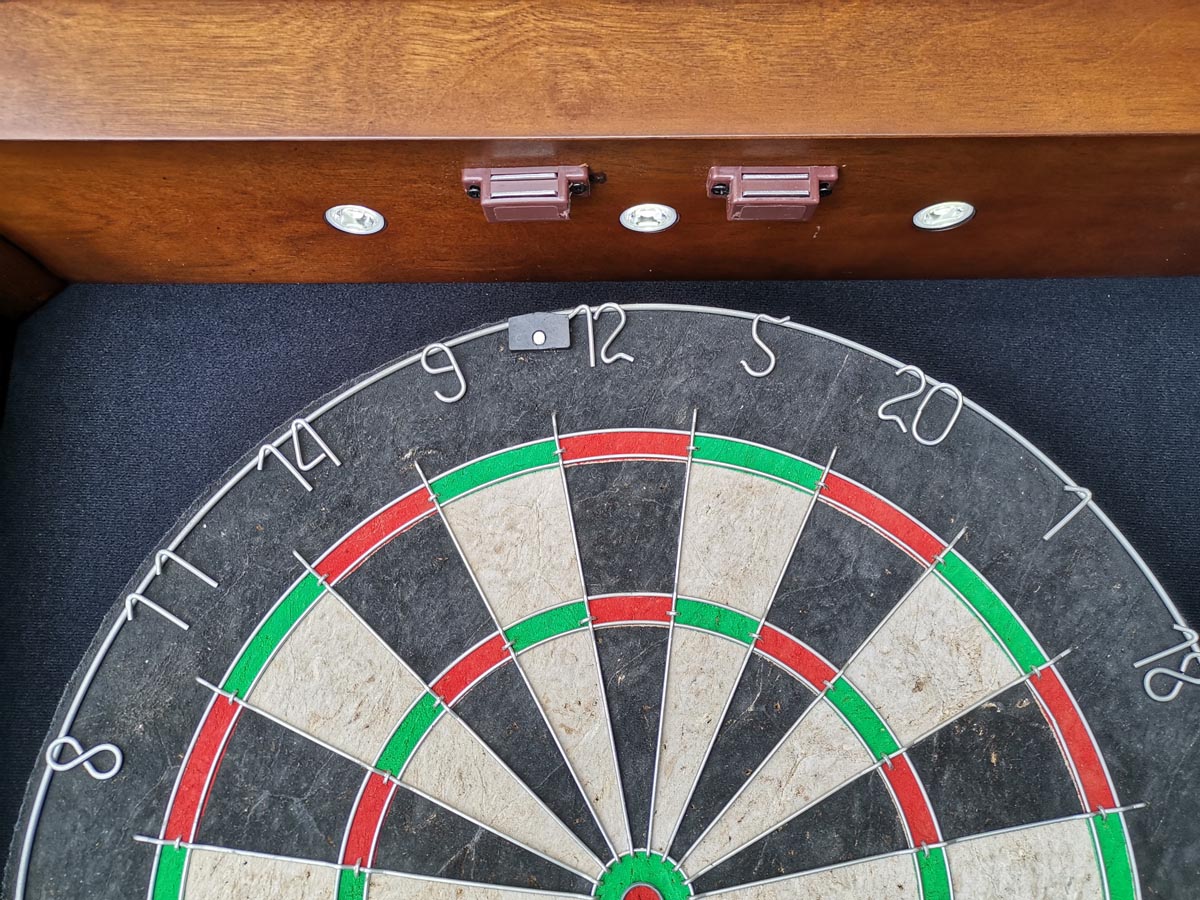 - Dual chalk scoreboards and built-in dart holders on each door