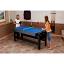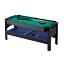 All of the most popular games are now at your disposal, in a third of the space with the Fat Cat 3-in-1 Flip Game Table! This revolutionary multi-game table design offers an unprecedented three of the most popular game room games that would normally take up the space of three separate tables in a single unit! Your family will be in for hours of fun flipping between the different games the Flip Table has to offer! Each table surface is optimized for its game, ensuring a great experience no what game you play. The first game to mention is pool, the Flip Table features a smooth durable playing surface that plays just like a pro table. With a sleek built-in pocket design, the table is totally contained. The space-saving playing field is surrounded by real rubber bumpers for an authentic bounce and covered in heavy duty cloth. On the flip side of the billiard table is the air powered hockey table. Where other tables feature motorless ‘slide hockey,’ the Pockey Table features a full-powered 220 volt electric motor. The extra glossy playing surface features hockey rink graphics for an excellent atmosphere during games. Easily keep track of the score with a manual scorer. The last game featured is a convenient table tennis top that can be used on either side. Changing between game modes is a snap with the exclusive latch system that locks the table into place for a stable game. The reversible table top is housed in a versatile frame complete with storage for the plethora of accessories included in this all-in-one package. Speaking of accessories, the Pockey Table includes: four pushers and pucks, a set of 2.25” billiard balls, a resin triangle, two 57” cue sticks, two pieces of chalk, a billiard brush, two table tennis paddles and balls, and a net with post set.