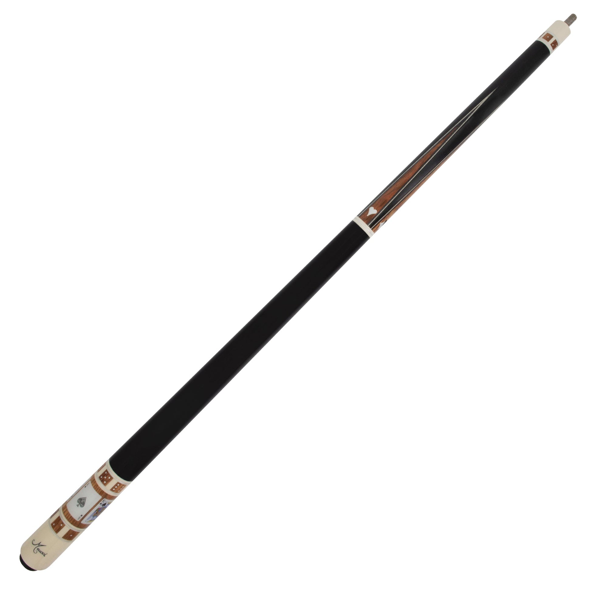 The Gambler 3, crafted from Ivory-colored high impact plastic and Birdseye Maple, comes with Cocobolo dice and Aluminum inlays in the shape of the four card suites. The Cocobolo butt sleeve features four playing cards set within Ivory-colored rings for a professional, sophisticated look. Crafted with precision and attention to detail, this is the perfect addition to your Meucci collection.