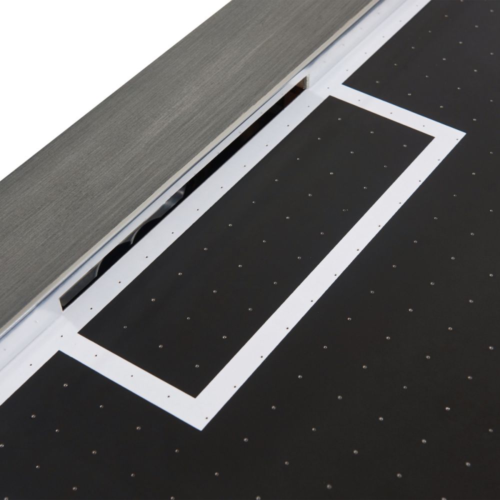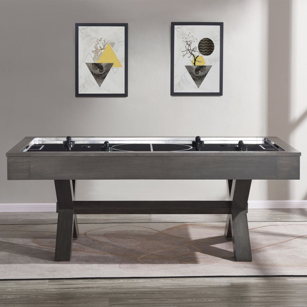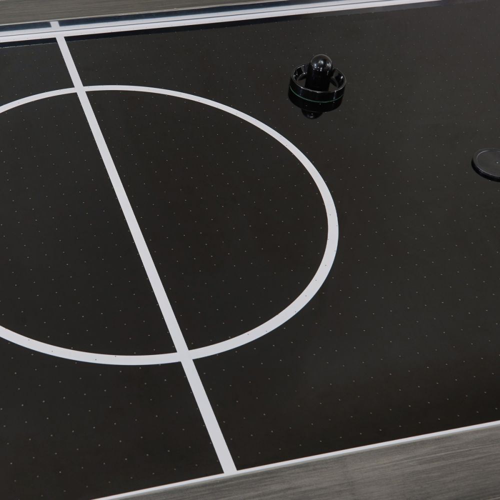 Score major points with the Blake Air Hockey Table. This sleek table boasts a seriously impressive silhouette with X-shaped legs with a modern style that elevates the look of any room. It has a single, powerful fan for smooth, even airflow that keeps up with even your most competitive gameplay. The regulation size field plays fierce and looks sharp in a rec room. Two manual, inset scoring systems allow the table to accommodate a table tennis conversion top so you can play two games on one table. It comes with 4 pucks and 4 goalies so you can dive right into the excitement.