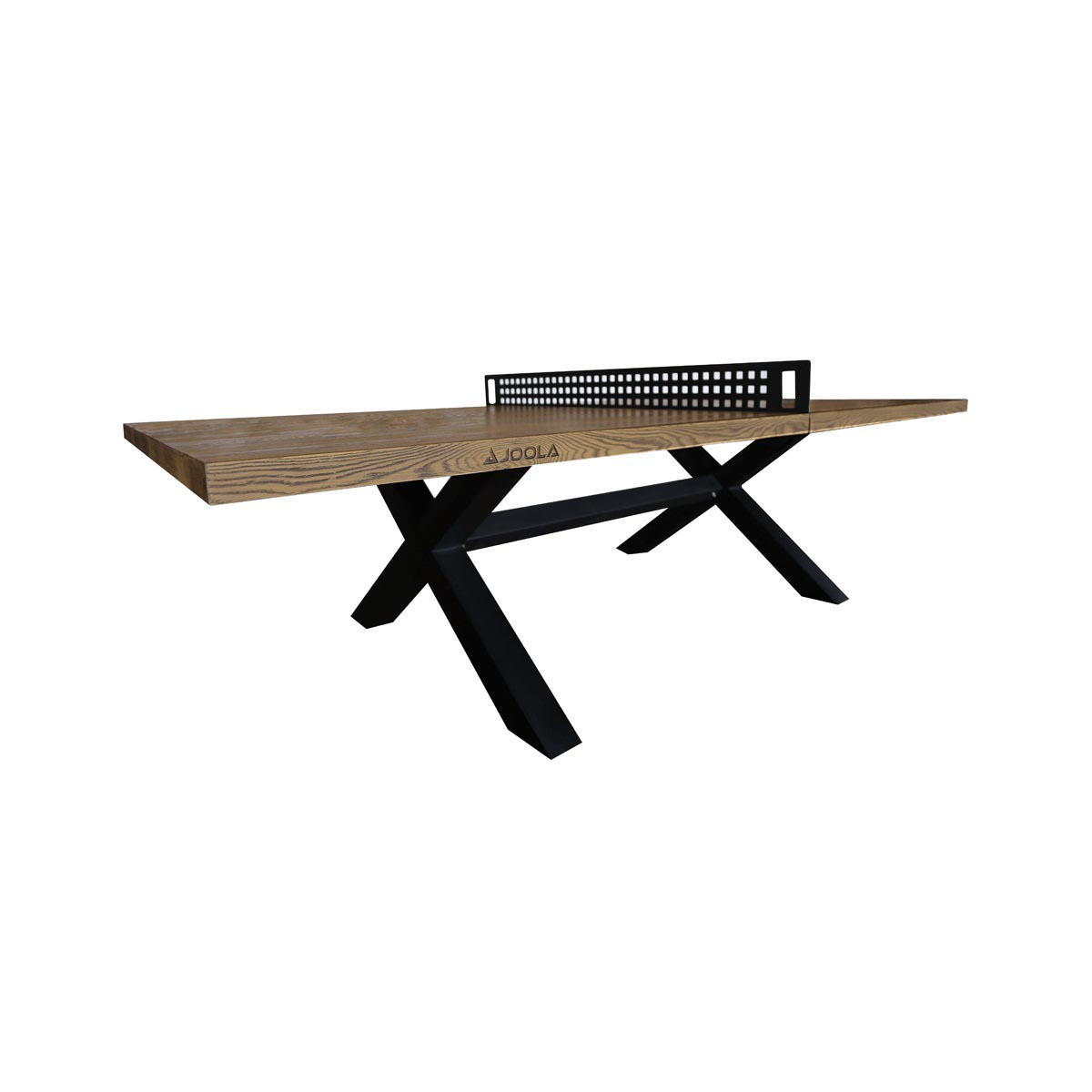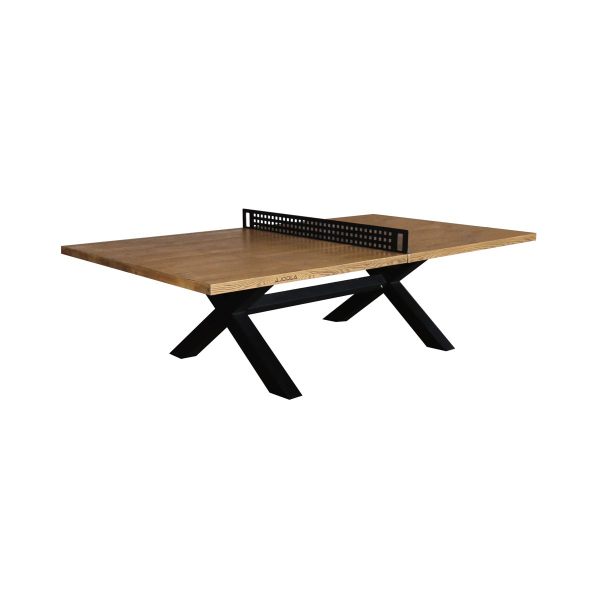 The JOOLA Berkshire Table Tennis Table is a modern multi-use conference room table, dining room table, and table tennis table. Made with concrete and an oak-wood look and feel, this table is great for use in an indoor or outdoor space. Surface simulates a wood grain polished oak finish and is designed with a heavy-duty X shape black powder coated steel base. The JOOLA Berkshire Table Tennis Table also includes a strong and sturdy steel net set.