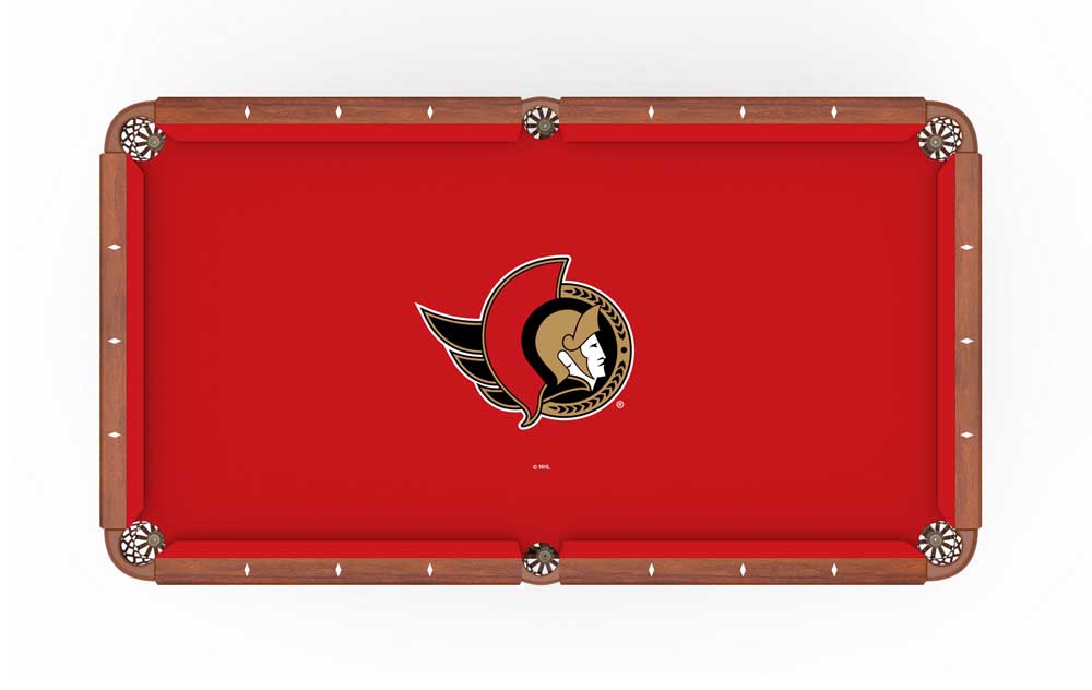 Manufactured by Hainsworth of England, they start with their renown Worsted cloth and the logo is dyed into the cloth resulting in a perfectly smooth, even play surface with no effect to ball play. Having a worsted cloth means it is woven with yarn that is combed to remove the short fibers, making the cloth smoother which results in balls running faster with much more consistent speed. Worsted cloth is more durable and will not compress to form gullies on the table. Hainsworth worsted cloth stands apart from other cloths on the market because it incorporates: finer yarn meaning greater thread count per inch; quality dye chemicals that coat the fibers better and are less likely to fade; extensive finishing to remove loose fibers to ensure the smoothest, flattest surface, increasing ball speed and consistency; durability, stretch and quality of fiber checked at every stage of the manufacturing; state of the art modern manufacturing machinery to guarantee quality and construction of the cloth. If you are looking to cover your new table or put new life into an existing table, look no further than the Hainsworth logo cloth