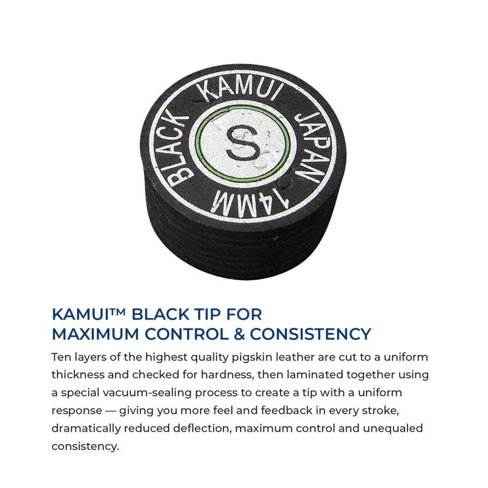 - Kamui Black Soft Tip for superior grip, spin and durability