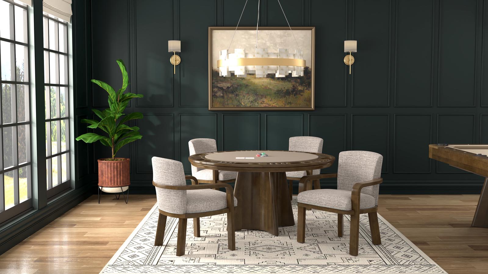 The Rincon Reversible Top Game Table is a premium solid hardwood game table & dining table all in one with a flip of the top. The game table is available in many sizes and shapes to fit your room and play preferences.
