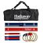 The Hathaway Ring Toss Game Set is a great way to get the entire family interacting and having good old-fashioned fun. Its compact size and easy portability make it a perfect choice for you to take on vacations, picnics, tailgating, camping, birthday parties, and game nights. This classic ring toss game includes color-coded dowels with different point assignments, 4 ABS rings and 4 braided rope rings. The game features a solid wood target base that requires no ground staking.