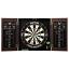 Complete the look of any game room with a classic Viper Stadium Dartboard Cabinet with Shot King Dartboard. Don't leave your wall unprotected from errant throws! The Stadium is constructed from wood with a classic walnut finish meant to absorb the toughest of impacts. The sharp, sleek design will complement most decors and will ensure that your dartboard doesn't clash with your style. The Hideaway has tons of features to make it the best cabinet for your needs! The magnetic door lock will keep the doors from swinging out and obstructing your rooms, while attached directly onto the doors are dry erase scoreboards for both 301 games and Cricket suitable for up to for players. The hinges of the Stadium's doors feature an antique brass finish to complete the traditional look of this cabinet. Underneath the main dartboard area are slots to hold up to six darts upright, to avoid folding the flights, and dry erase marker for the scoreboard, so it doesn't go missing. Included with your dartboard cabinet is a Viper Shot King Sisal Dartboard, one of our top selling dartboards. Featuring top quality sisal fibers, the Shot King is designed to self heal and last much longer. With a staple free bull and rounded spider wires, bounce outs are reduced to a minimum. A removable score ring allows you to rotate your board so it wears evenly. The regulation dartboard measures 18" in diameter for a tournament level experience. Your dart room isn't complete until you have a cabinet in which to store it!